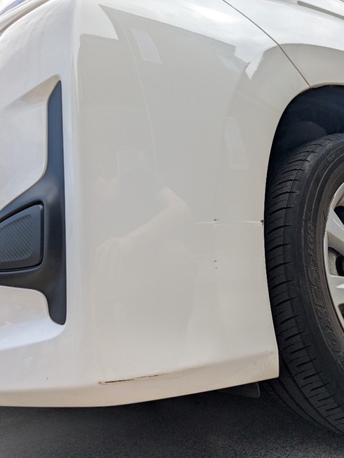 今回の修理依頼は、左フロントバンパーの擦り傷です。