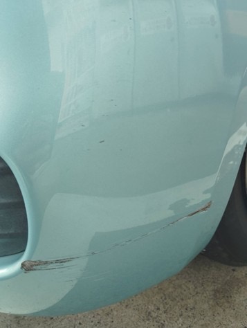 今回の修理依頼は、左フロントバンパーの擦り傷です。