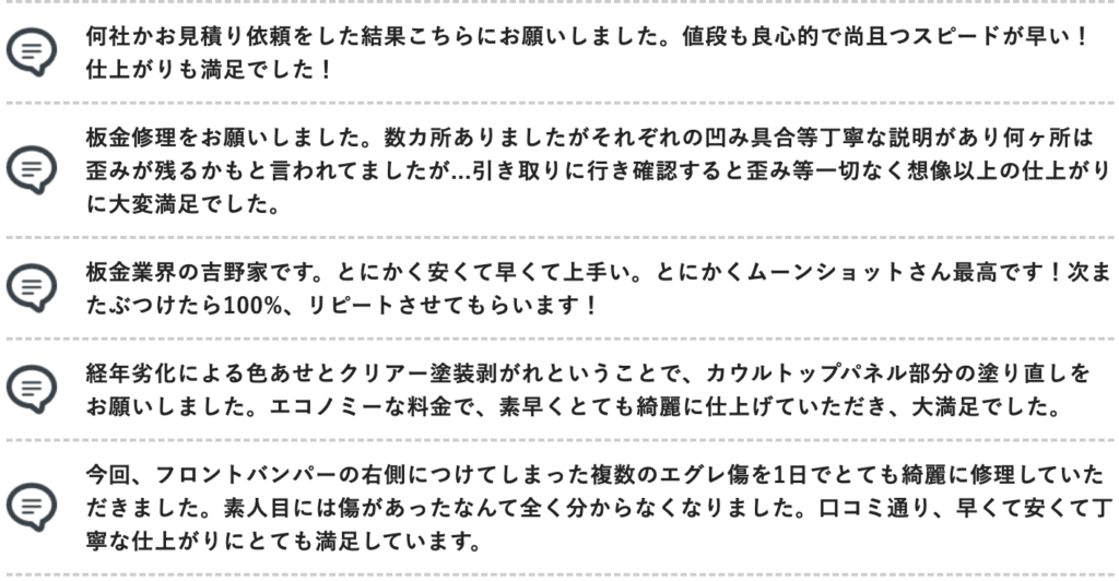 修理技術には確かな自信を持っており、実際のお客様からも多くの高評価をいただいております。