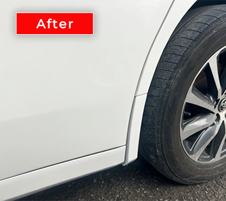 クォーターパネルやリアバンパーなど、脱着できないパーツは修理代が高くなる傾向にあります。トヨタディーラーに依頼すると150,000円以上かかる修理ですが、ムーンショットではトータル99,000円(税込み)で対応しました。