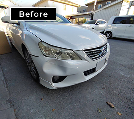 ▶修理事例:トヨタ・マークX バンパーとフェンダーの凹み 修理事例